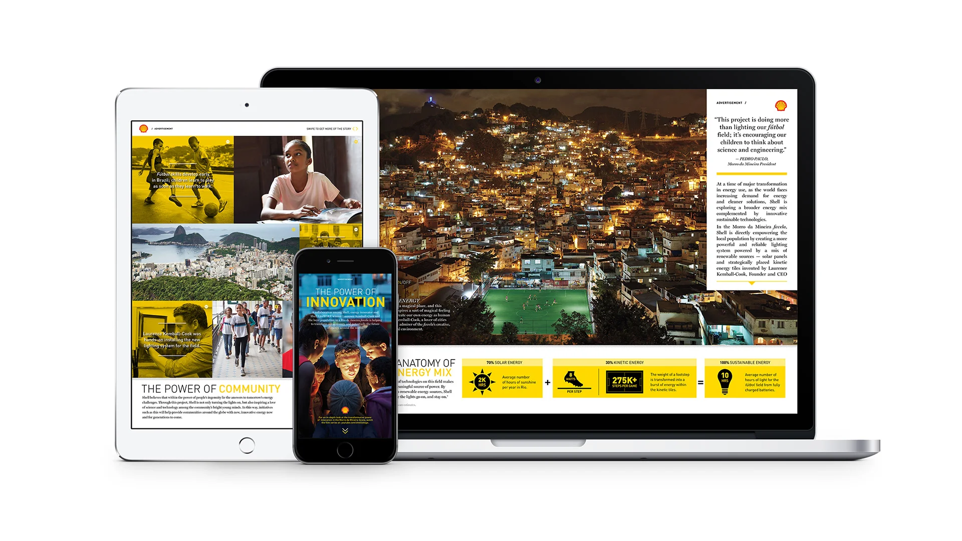 23S created a robust, video-centric program, “The Power of Sport,” tied to Shell’s latest project: restoring a football pitch in a Rio de Janeiro favela using a mix of solar panels and new kinetic tile technology. The three original videos written and produced by 23S– “The Power of Innovation,” “The Power of Community,” and “The Power of Potential”—featured the charismatic Laurence Kemball-Cook speaking about each theme. The program also supported a rich custom ad experience across print and digital (mobile and tablet). Multiple Condé Nast brands organically drove viewership and engagement via their own social channels.